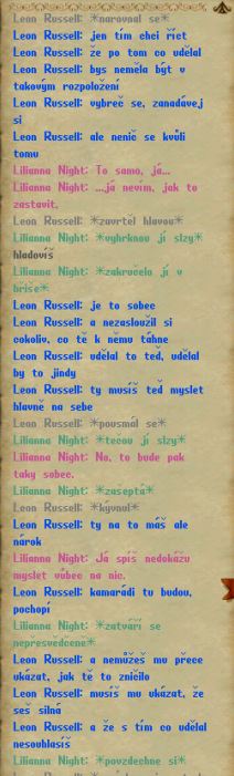 Evidentně to ví už celá škola. Dokonce mi psal Leon. Prý že umí podat pomocnou ruku a že se mám držet. Já se ale nechci držet! Já chci, aby šli všichni do háje. Proč mi píše Leon?! Vždyť se ani nebavíme! Neměl by spíš psát Seanovi, když je teď v jeho klubu podvodníků, co s holkama jednají jako s kusem hadru? Třeba by teď mohli být kámoši.